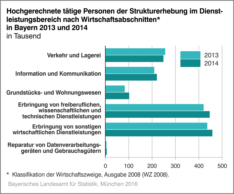 Hochgerechnete tätige Personen der Strukturerhebung im Dienstleistungsbereich nach Wirtschaftsabschnitten in bayern 2013 und 2014