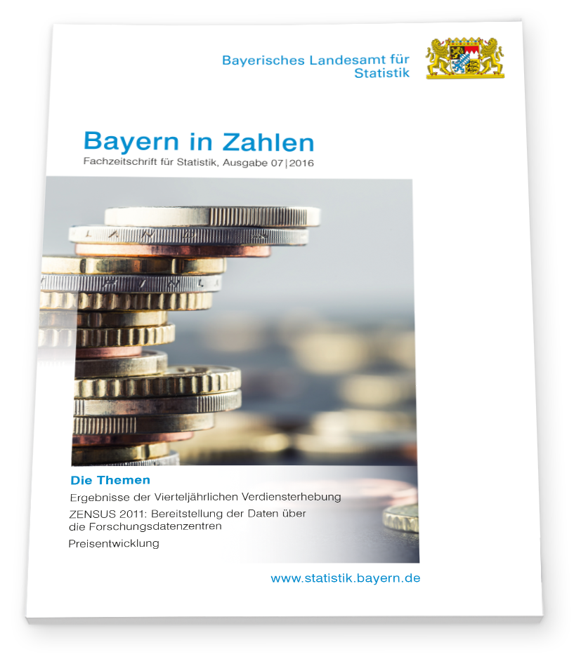 Wichtige Informationen über Verdienste und Arbeitszeiten im Produzierenden Gewerbe und im Dienstleistungssektor liefert die Vierteljährliche Verdiensterhebung. Vorgestellt werden deren Ergebnisse für Bayern im Jahr 2015. Einen historischen Vergleich dazu gibt der Beitrag zu den Bruttojahresverdiensten in Industrie und Handel im Jahr 1985. Thematisch passend zu den Verdiensten analysiert ein Gastbeitrag des Statistischen Bundesamts die Preisentwicklung in Deutschland 2015 über alle Wirtschaftsstufen. Aus dem Zensus 2011 sind jetzt die Einzeldaten in den Forschungsdatenzentren der Statistischen Ämter des Bundes und der Länder für Analysen der empirischen Wissenschaft zugänglich.