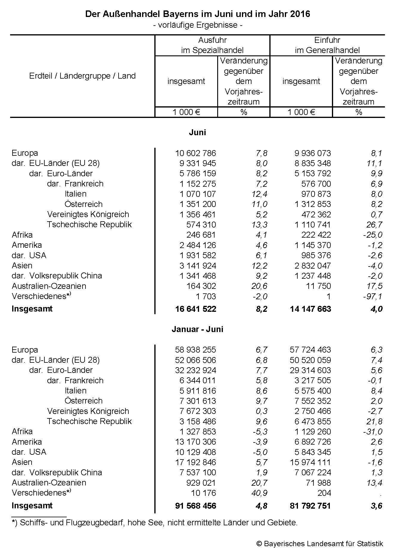 Der Außenhandel Bayerns im Juni und im Jahr 2016