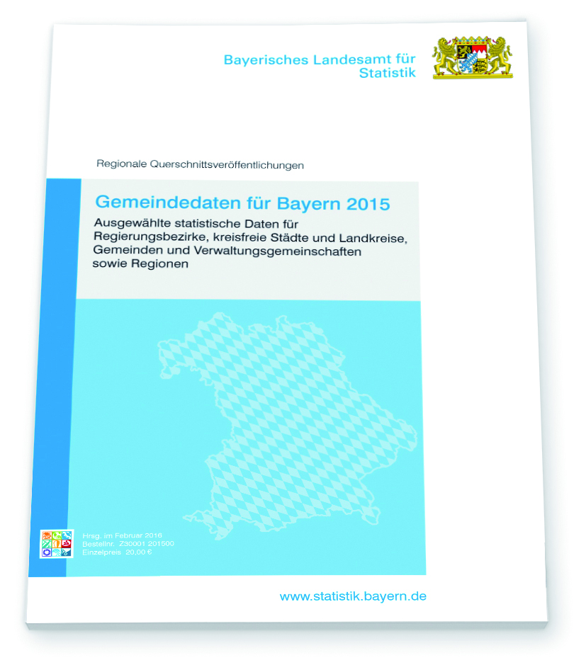 Erhältlich sind die „Gemeindedaten für Bayern 2015“ als Heft (Bestell-Nr. Z30001, Preis: 20,00 €), als DVD (PDF, Excel; Bestell-Nr. Z3000A, Preis: 10,00 €), als Heft + DVD (Bestell-Nr. Z3000P, Preis: 25,00 €) sowie als Datei (PDF, CSV, Excel) zum Download (Preis: 10,00 €) unter www.statistik.bayern.de/veroeffentlichungen und beim Vertrieb des Landesamts (vertrieb@statistik.bayern.de). Im Bayerischen Behördennetz sind für alle Zugangsberechtigten die Dateien der jeweils aktuellen Gemeindedaten in verschiedenen Formaten (PDF, CSV, Excel) kostenfrei abrufbar.