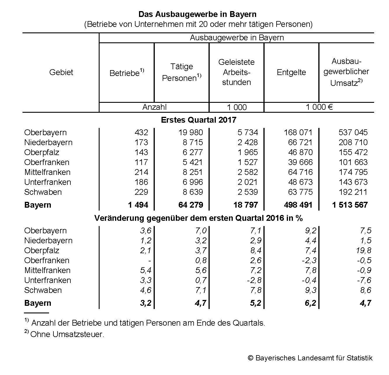 Bayerns Ausbaugewerbe im ersten Vierteljahr 2017