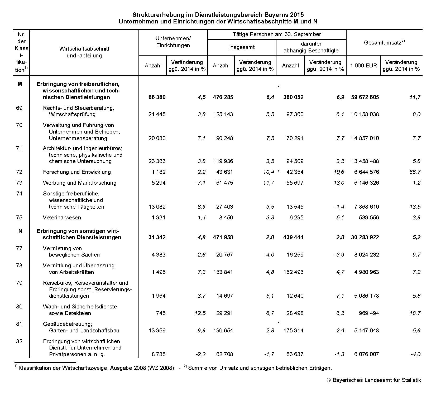 Strukturerhebung im Dienstleistungsbereich Bayerns 2015. Unternehmen und Einrichtungen der Wirtschaftsabschnitte M und N