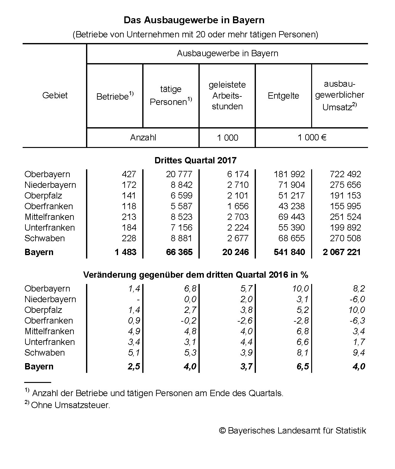 Bayerns Ausbaugewerbe von Juli bis September 2017