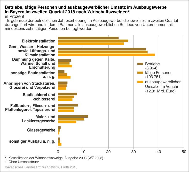 Das Ausbaugewerbe in Bayern zeigt sich Ende Juni und im zweiten Vierteljahr 2018 mit gutem Ergebnis
