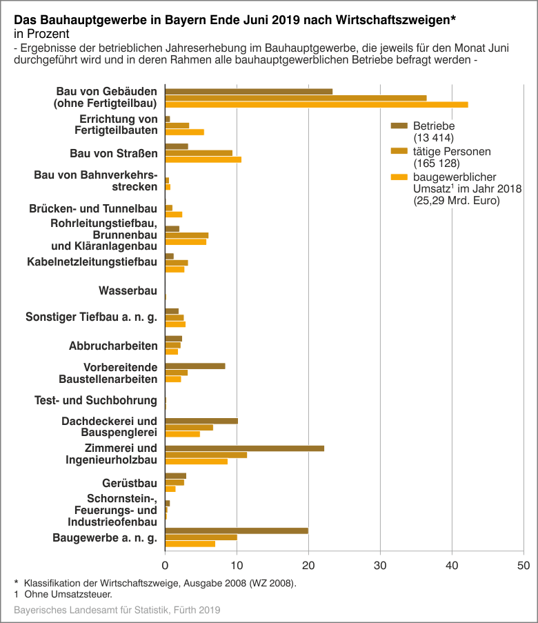 Das Bauhauptgewerbe in Bayern nach Ergebnissen der betrieblichen Strukturerhebung Ende Juni 2019
