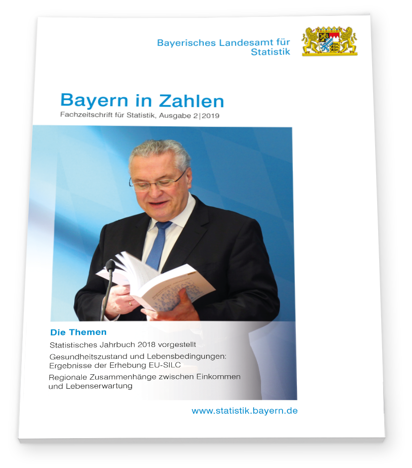 Kernthema dieser Ausgabe ist die traditionsreichste Publikation des Bayerischen Landesamts für Statistik: Das Statistische Jahrbuch für Bayern. Bereits im Jahr 1894 erschien das erste Jahrbuch – im Januar 2019 konnten Innenminister Joachim Herrmann und Landesamts-Präsident Dr. Thomas Gößl die inzwischen 61. Ausgabe des umfangreichen Zahlenwerks präsentieren. Im zweiten Themenblock geht es um Gesundheit: Anhand der Ergebnisse der Erhebung EU-SILC befasst sich ein Fachbeitrag mit dem Zusammenhang zwischen Lebensbedingungen und Gesundheitszustand in Bayern. Welche regionalen Zusammenhänge zwischen Einkommen und Lebenserwartung in Bayern existieren, zeigt ein Gastbeitrag des Bayerischen Landesamts für Gesundheit und Lebensmittelsicherheit.