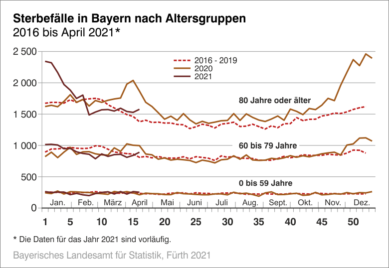 Corona: Sterbefallzahlen in Bayern im April 2021 auf ähnlichem Niveau wie in den Vorjahren