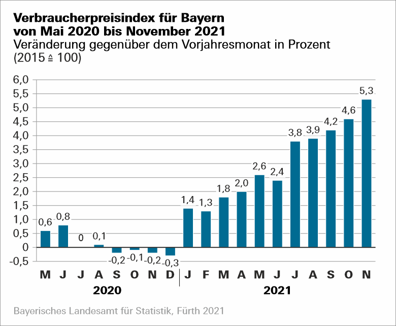 Weiterer Anstieg der Verbraucherpreise in Bayern Inflationsrate liegt im November 2021 bei 5,3 Prozent