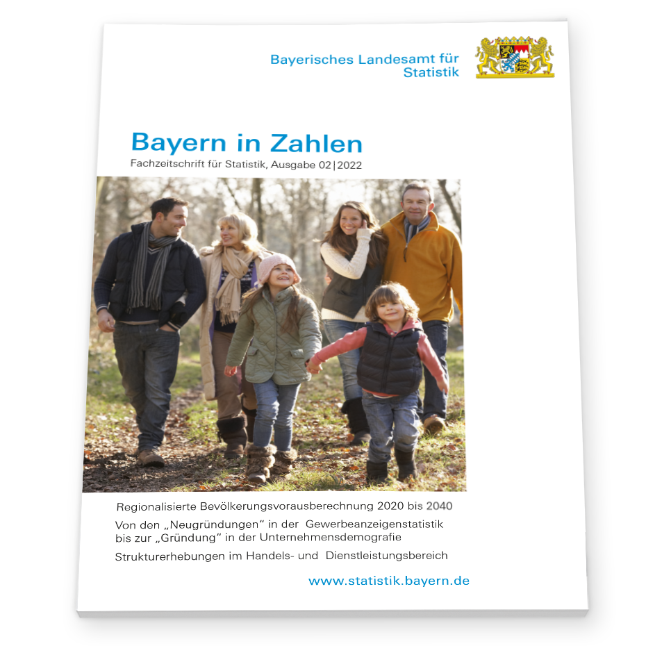 Als Datei ist die Monatszeitschrift „Bayern in Zahlen“ unter www.statistik.bayern.de/produkte/biz kostenlos abrufbar. Die Druckausgabe (Bestell-Nr. Z10002 202202: Einzelheft 4,80 €, Jahresabonnement 46,- €) kann beim Vertrieb per E-Mail (vertrieb@statistik.bayern.de), Telefon (0911 98208-6311) oder Fax (0911 98208-6638) bestellt werden.