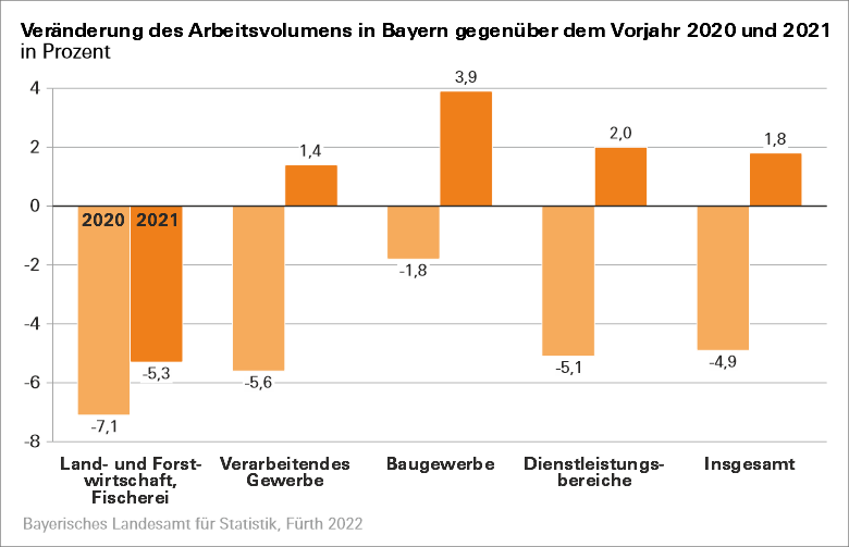 Arbeitsvolumen steigt in Bayern 2021 wieder an – Niveau vor der Pandemie wird jedoch nicht erreicht