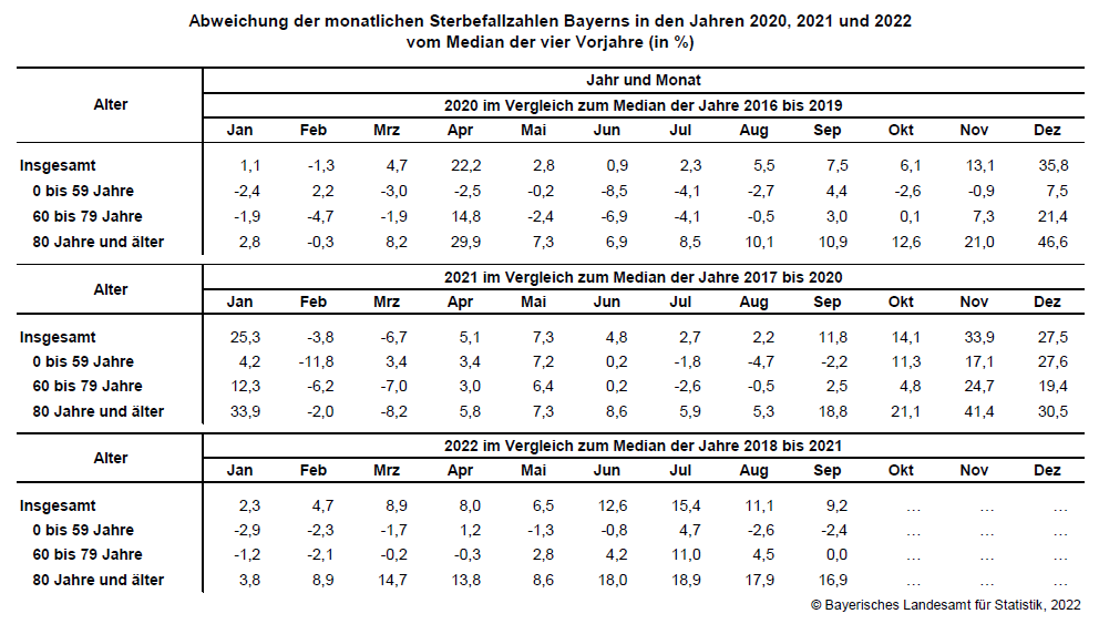 Nach derzeitigem Datenstand verstarben im September des laufenden Jahres 11 314 Personen, berichtet das Fachteam des Bayerischen Landesamts für