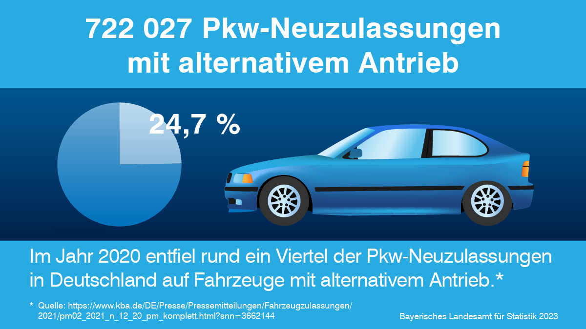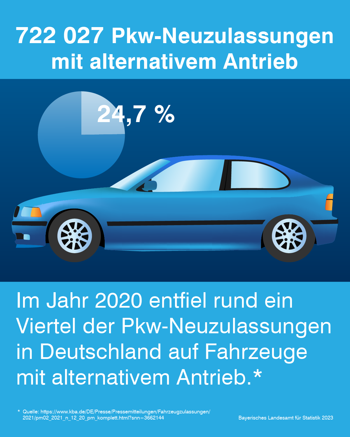 10,7 Milliarden. Euro und damit 66,1 Prozent des gesamten umweltschutzbezogenen Umsatzes wurden im Jahr 2020 mit Gütern und Leistungen für den Klimaschutz erwirtschaftet. Insbesondere Maßnahmen zur Verbesserung der Energieeffizienz wie energieeffiziente Antriebs- und Steuerungstechnik sowie die Wärmedämmung von Gebäuden wurden hier nachgefragt. Mit 11,1 Prozent hatte der Umweltbereich Luftreinhaltung den zweitgrößten Anteil an den umweltschutzbezogenen Umsätzen. Dies ist vor allem auf die erstmalige Berücksichtigung der Elektromobilität zurückzuführen, die ein Umsatzvolumen von 0,8 Milliarden Euro aufwies. Dieser Umsatz spiegelt den zunehmenden Anteil an den Neuzulassungen von PKWs mit alternativen Antrieben im Bereich der Elektromobilität wieder. Dieser lag im Berichtsjahr 2020 laut Kraftfahrt-Bundesamt bei 24,7 Prozent in Deutschland.