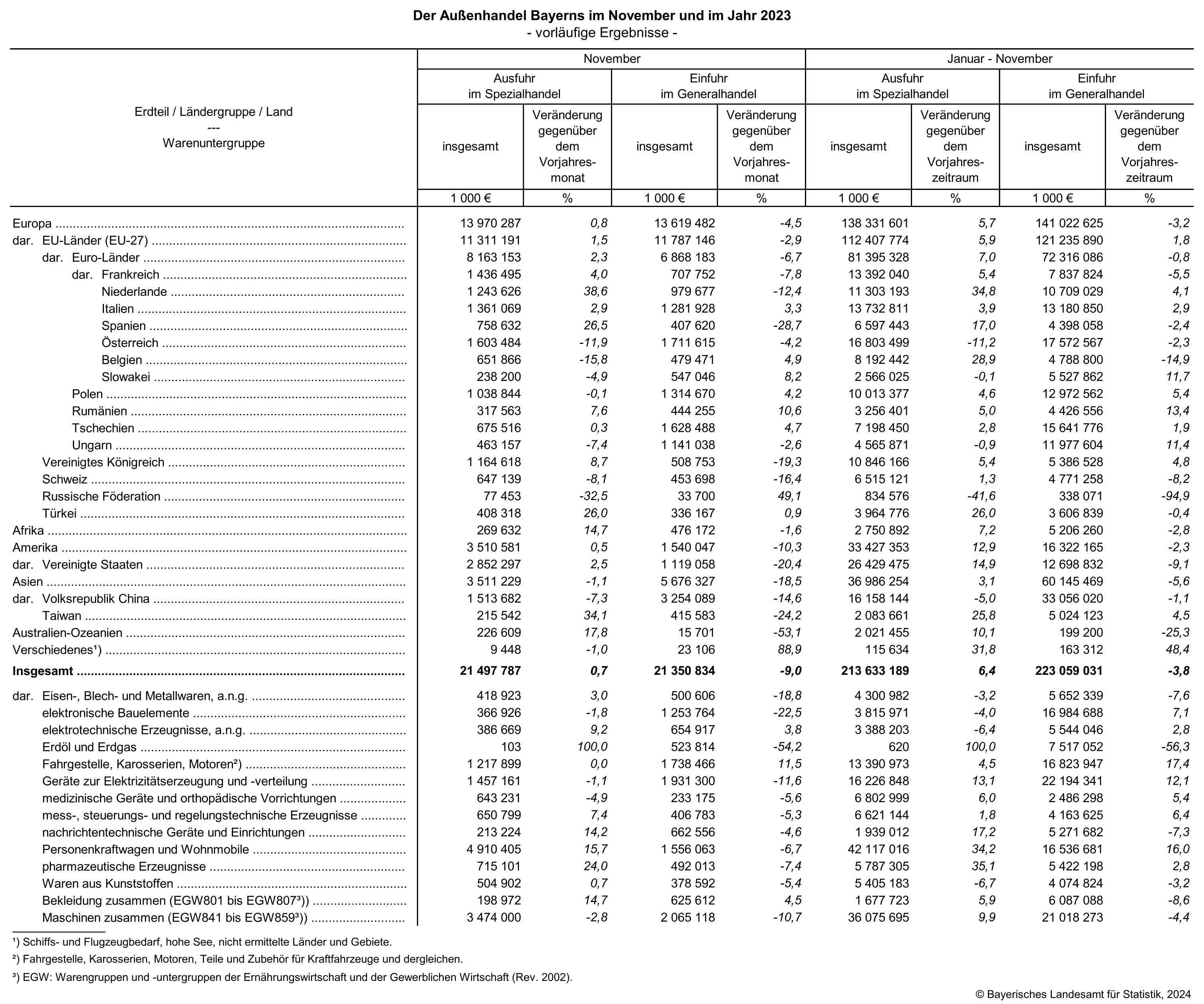 Der Außenhandel Bayerns im November und im Jahr 2023