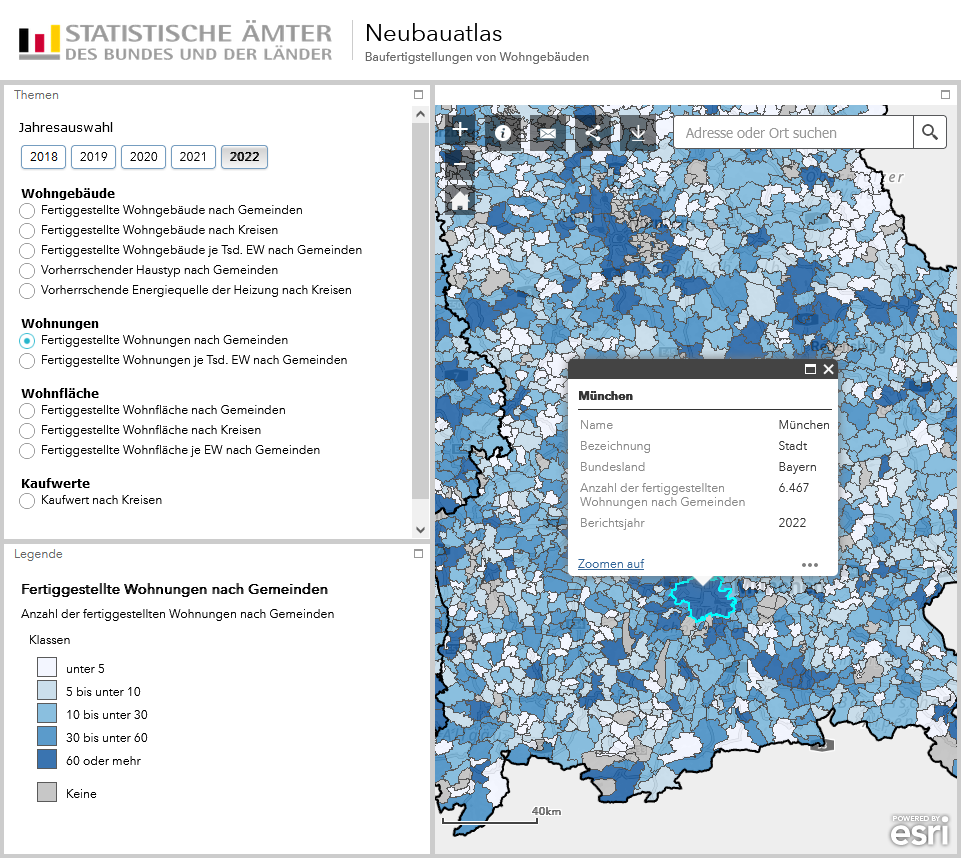 Der Neubauatlas der Statistischen Ämter des Bundes und der Länder ist im Statistikportal unter dem Link https://neubauatlas.statistikportal.de erreichbar.