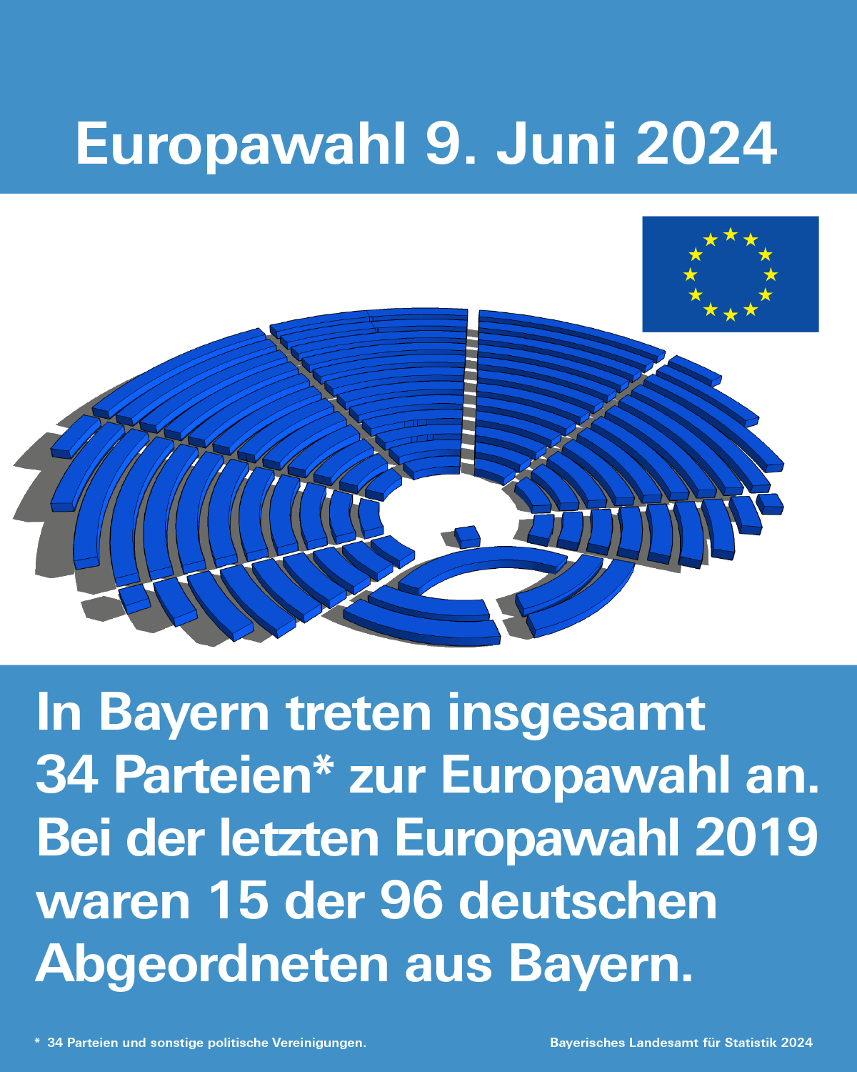 Im Internetangebot der Landeswahlleitung stehen wichtige Informationen zur Europawahl unter www.statistik.bayern.de/wahlen/europawahlen zur Verfügung. Unter anderem auch, welche Parteien und politischen Vereinigungen in Bayern zur Wahl zugelassen sind und wie der Musterstimmzettel aussieht.