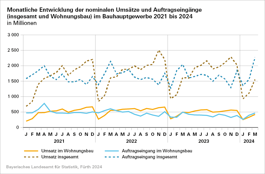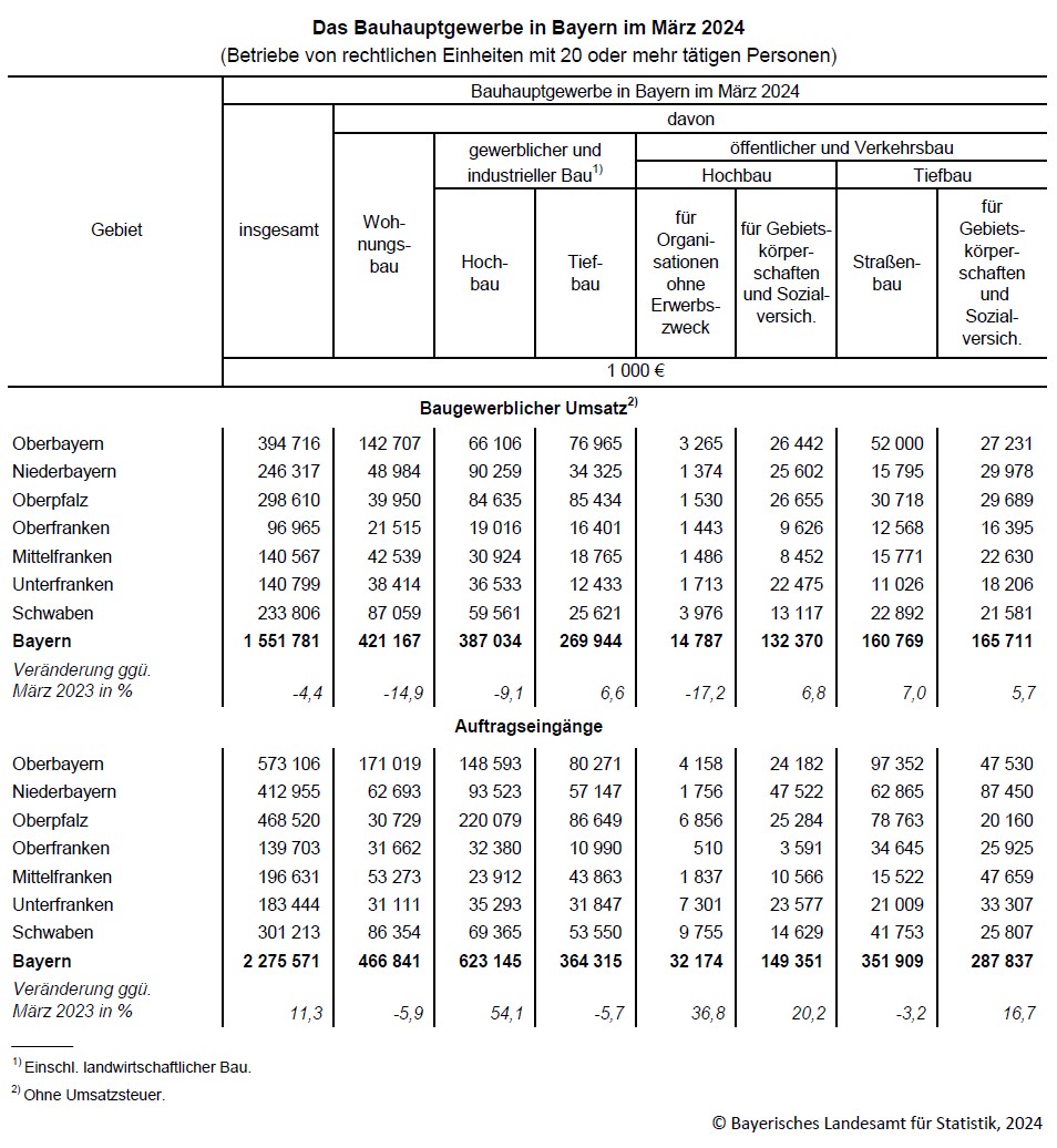 Auftragseingang in Bayerns Bauhauptgewerbe im März 2024 nominal 11,3 Prozent über Vorjahresniveau