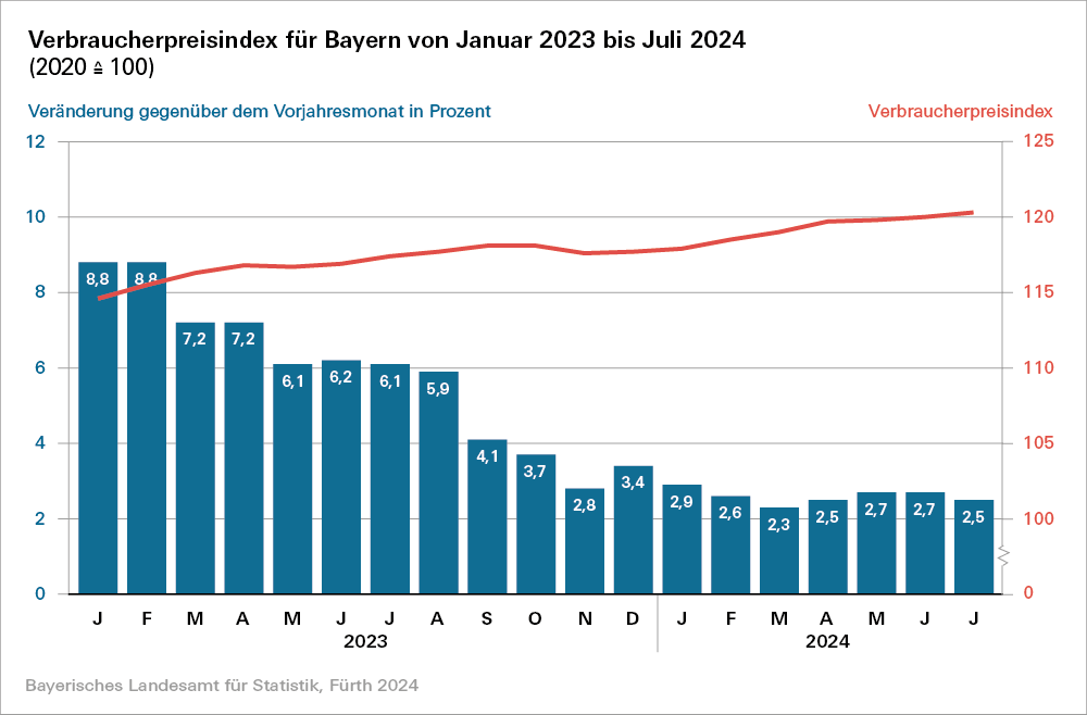 Inflation in Bayern im Juli 2024 bei 2,5 Prozent