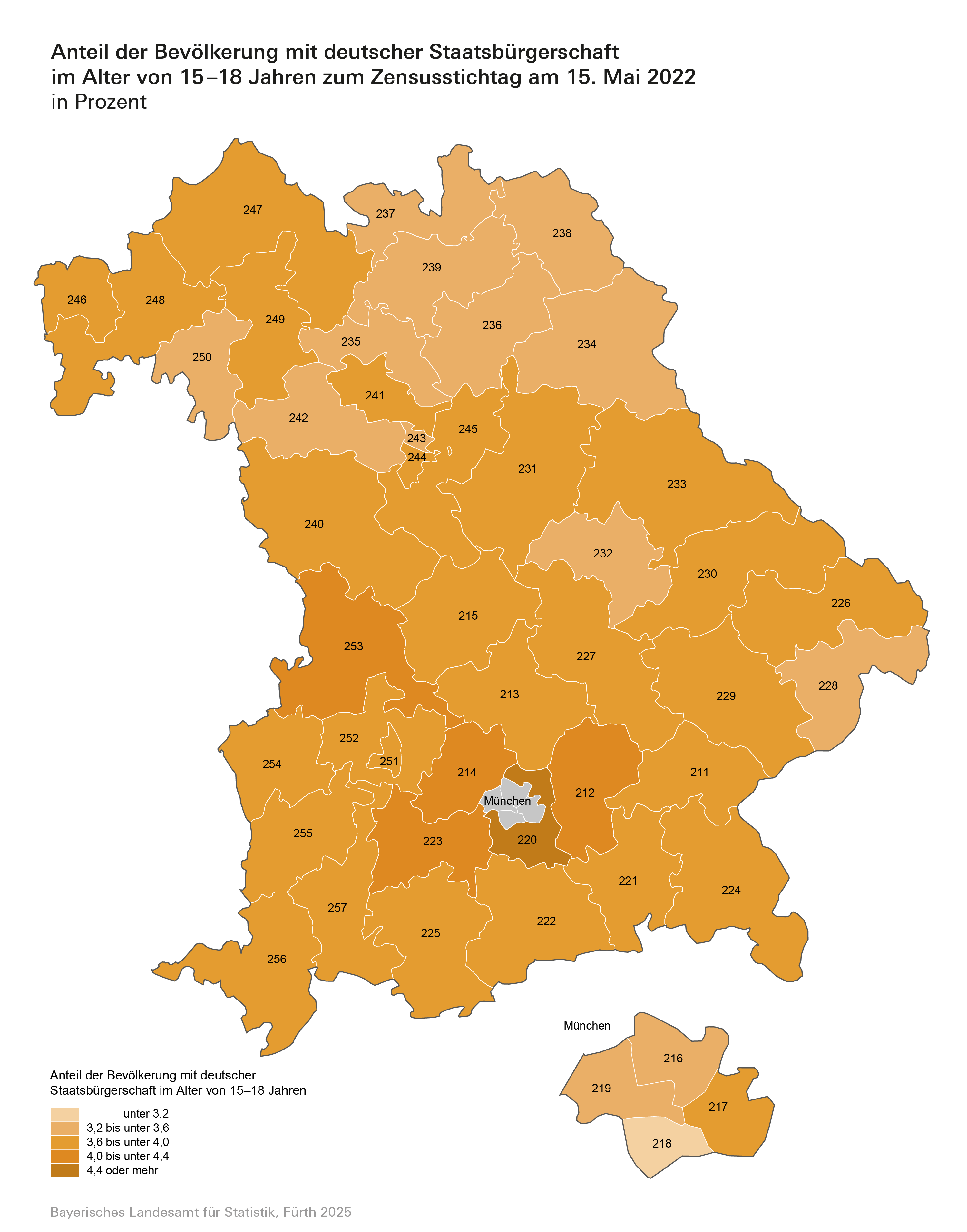 2 Zur Zahl der Erstwählerinnen und Erstwähler weist das Landesamt auf die Pressemeldung 003/2025/41/A hin. Im Zensus wird das Alter zum Stichtag der Erhebung erfasst, weshalb alle, die zwischen 16.05.2003–15.05.2007 geboren wurden, als