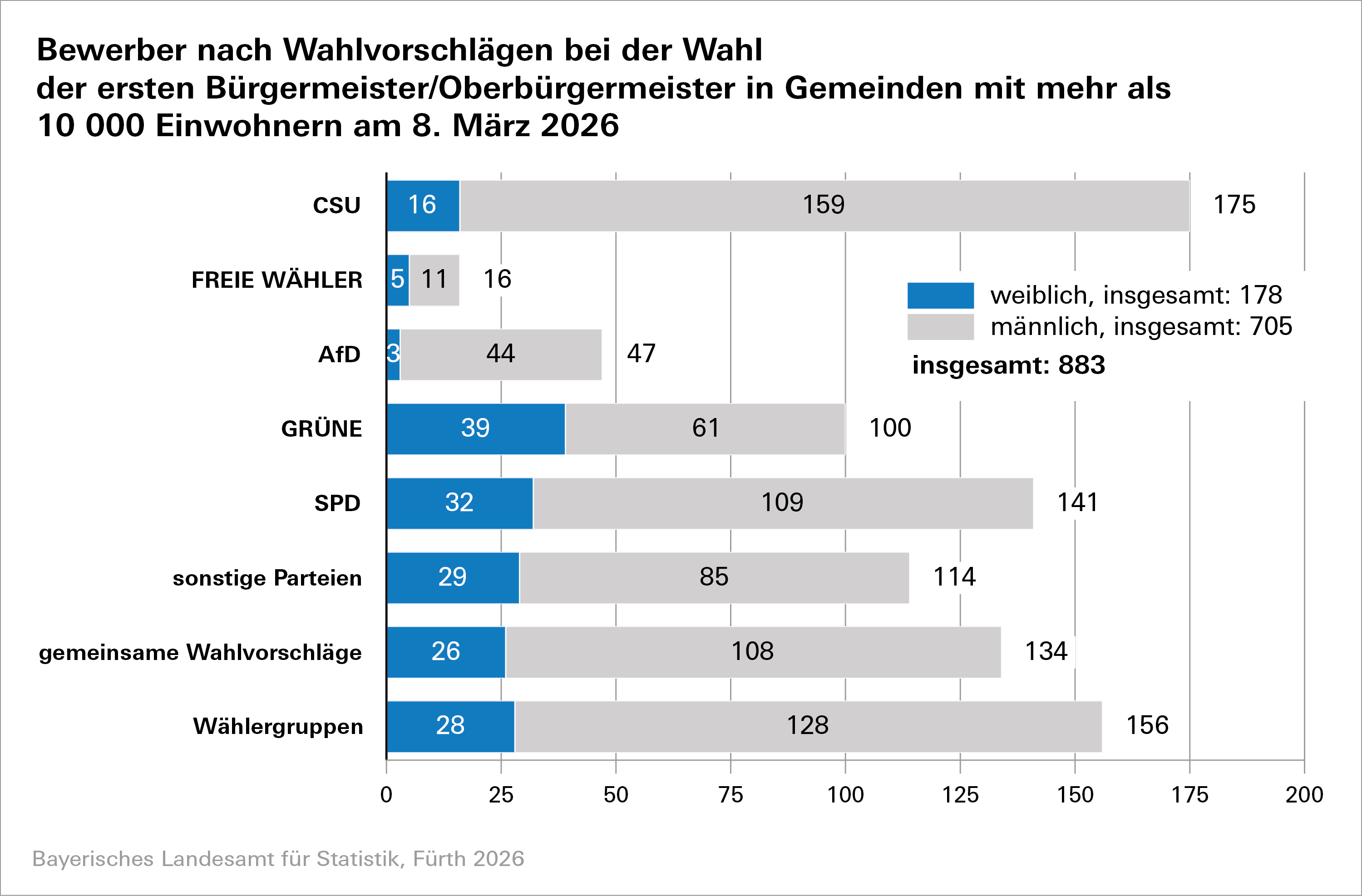 Fürth. Am 8. März 2026 finden die allgemeinen Gemeinde- und Landkreiswahlen im Freistaat statt. Das Bayerische Landesamt für Statistik wird am Wahlabend, Sonntag, 8. März 2026, die Ergebnisse der Schnellmeldungen aller Oberbürgermeisterwahlen und der Bürgermeisterwahlen in kreisangehörigen Gemeinden mit mehr als 10 000 Einwohnern sowie der Landratswahlen in der Webpräsentation veröffentlichen: www.kommunalwahl2026.bayern.de