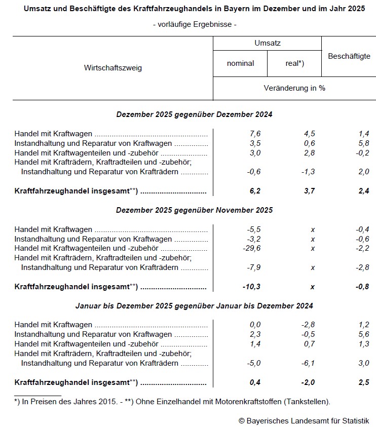 „Umsatz und Beschäftigte im bayerischen Kraftfahrzeughandel und Großhandel im Dezember 2025“ (Bestellnummer: G1200C).