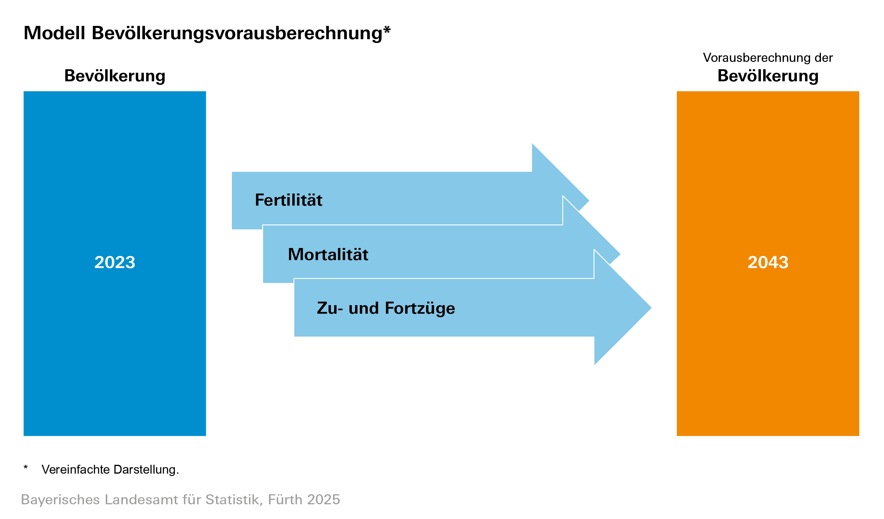 Neben unvorhersehbaren Ereignissen, wie z.B. Kriegen, Naturkatastrophen oder Pandemien, haben auch politische Entscheidungen Einfluss auf die zukünftige Bevölkerungsentwicklung. Um solche Veränderungen zu berücksichtigen, wird die Vorausberechnung jährlich durch das Bayerische Landesamt für Statistik aktualisiert.