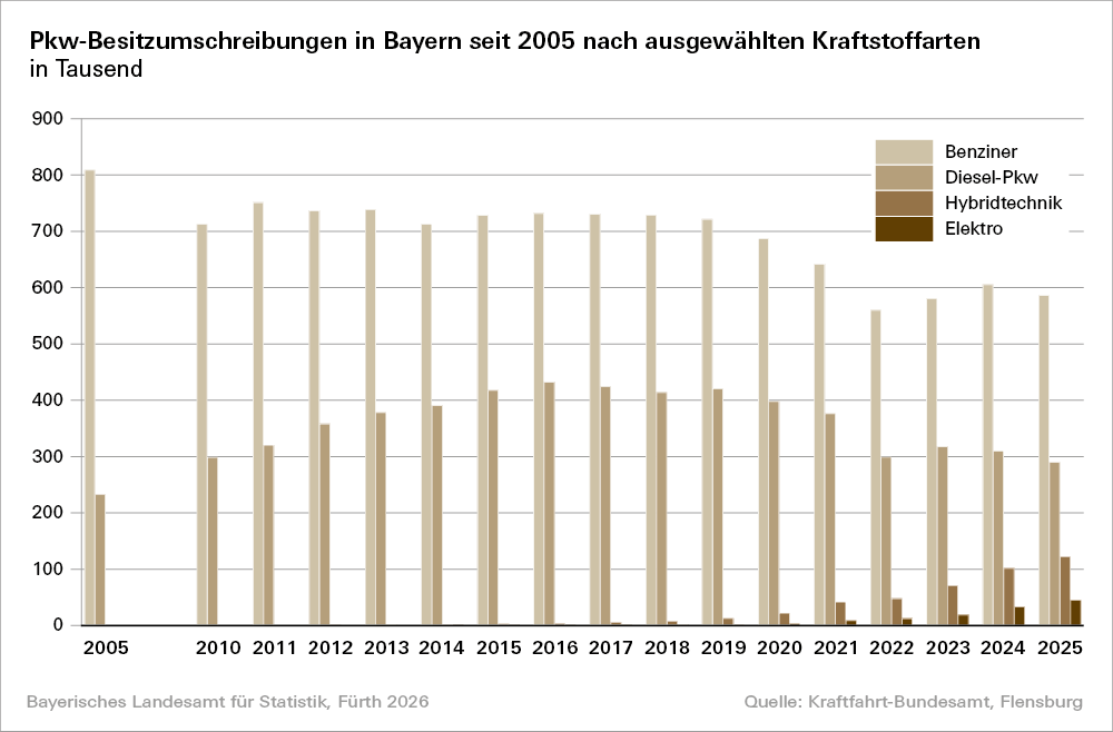 Pkw-Besitzumbschreibungen in Bayern nach ausgewählten Kraftstoffarten